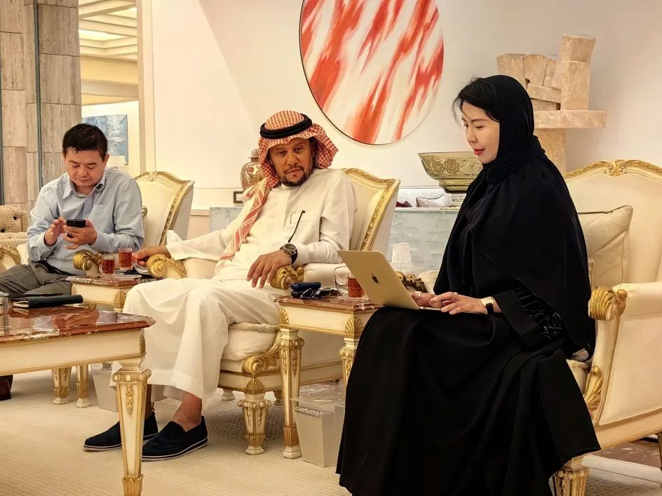 The journey to Saudi Arabia continues, with the lofty mission of promoting Hefei's green technology industry products and promoting international exchanges and cooperation; Dou Huaihong, Chairman of Guohe Global, and Xu Qiuhong, President of Hefei Women's Enterprise Association, paid a special visit to Prince Naif bin Abdullah bin Saud bin Abdulaziz AlSaud (hereinafter referred to as Prince Naif) of Saudi Arabia, and the two sides had a friendly and in-depth exchange.
