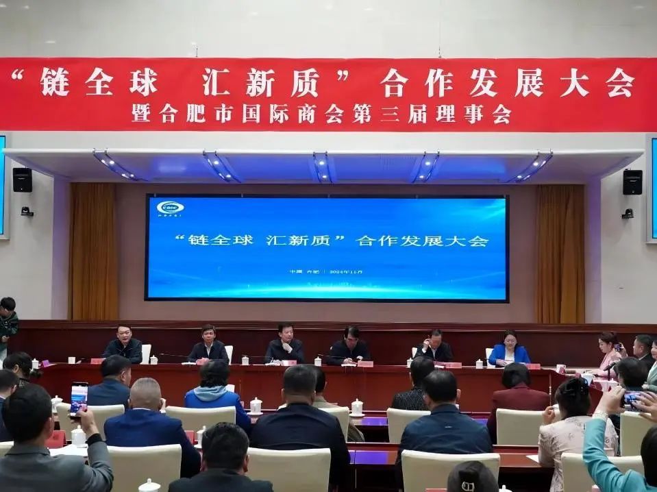 On the morning of November 7, 2024, the "Chain Global Exchange New Quality" Cooperation and Development Conference was held in Hefei Municipal Affairs Conference Center. Zhang Huaike, Deputy Director of the Standing Committee of the Hefei Municipal People's Congress, Li Mingshan, Deputy Mayor of the Hefei Municipal People's Government, Luo Zhaohao, Vice Chairman of the Hefei CPPCC, Yang Youming, Director of the Hefei Municipal Bureau of Commerce and President of the Municipal Council for the Promotion of International Trade (Municipal International Chamber of Commerce), Hu Jing, member of the Party Group of the Hefei Municipal Bureau of Commerce, Vice President (Deputy Director) of the Municipal Council for the Promotion of International Trade (Municipal Expo Bureau), and vice presidents, advisory members, secretary-generals, executive directors, directors and other heads of the business departments of various counties (cities) and development zones, and special guests attended the meeting. Dou Huaihong, Chairman of Guohe Global, was invited to attend the meeting as a representative of Hefei International Chamber of Commerce.